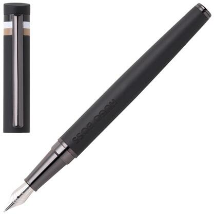 HUGO BOSS töltőtoll Loop Camel Iconic fekete test + ezüst klipsz barna-fehér csíkkal (HB0520)