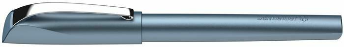műanyag tolltest elegáns metál bevonattal kék színű tinta töltőtoll patronnal kompatibilis, utántölthető (TSC6603) ajándék patron a tolltestben gumírozott fogórész rozsdamentes acél tollhegy erős fém klip alkalmas jobb-, és balkezesek számára vonalvastagság: 0,5 mm (M)